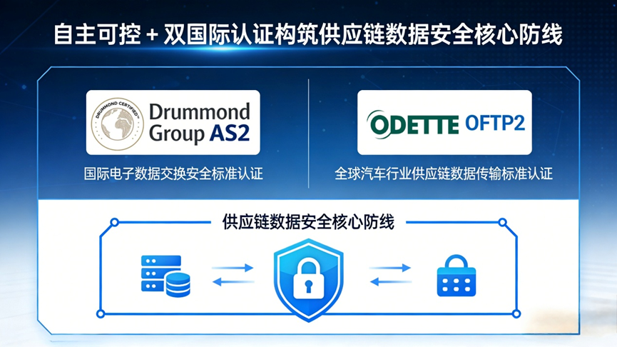 作为汽车供应链电子数据交换(EDI)的核心国际标准,OFTP2由Odette国际组织主导制定,凭借端到端加密、严格身份认证、完整日志审计等特性,成为奥迪、宝马、福特等国际车企及核心零部件供应商的强制传输标准,更是保障汽车设计数据、订单信息、生产计划等核心商业数据安全传输的全球通用准则。聚信万通仅用不到一个月便完成OFTP2全流程测试认证,这一高效成果背后,是EasyLink历经多年打磨的技术积淀,更是企业技术实力的直接体现。值得关注的是,聚信万通不仅是OFTP2认证的通过者,更是中国唯一受邀同时加入Drummond Group AS2 & Odette OFTP2国际专家组的企业,实现了从“跟随国际标准”到“参与制定国际标准”的历史性跨越,让中国技术智慧融入全球汽车供应链数据交换规则制定,为中国汽车企业出海合作搭建了标准化的数据桥梁。
